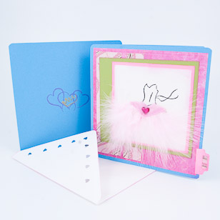 | Feather textured ballerina outfit on the outside. Hearts design on inside. Blank inside. Great for any occasion for that special Little Girl! |