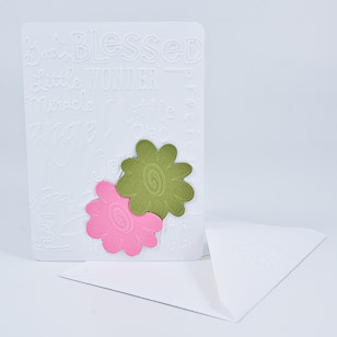 | Textured sayings on the outside with green and pink flower. Blank inside. Good for any occasion! |