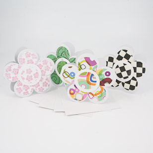 | Set of 8. Two of each print. Fun print outsides. Blank inside. Great for party invites, thank yous, or any occasion. |