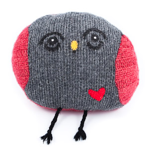 | Eco friendly bird made from repurposed sweaters. Felt detailing for eyes, nose, and heart. Plush and soft with poly filling. Contents may contain some wool and cotton. Limited quantities in this color. 7.5" x 8". Currently available in Grey/Red. |